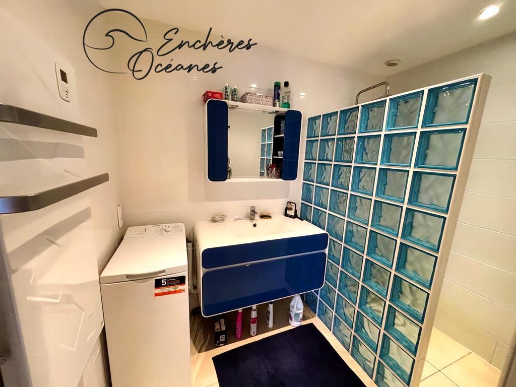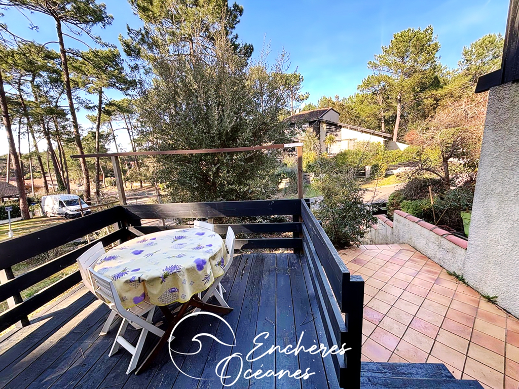 L’ensemble s’ouvre sur une grande terrasse en bois et un jardin privatif d’environ 100 m², parfait pour profiter pleinement des beaux jours en bordure de l’océan.