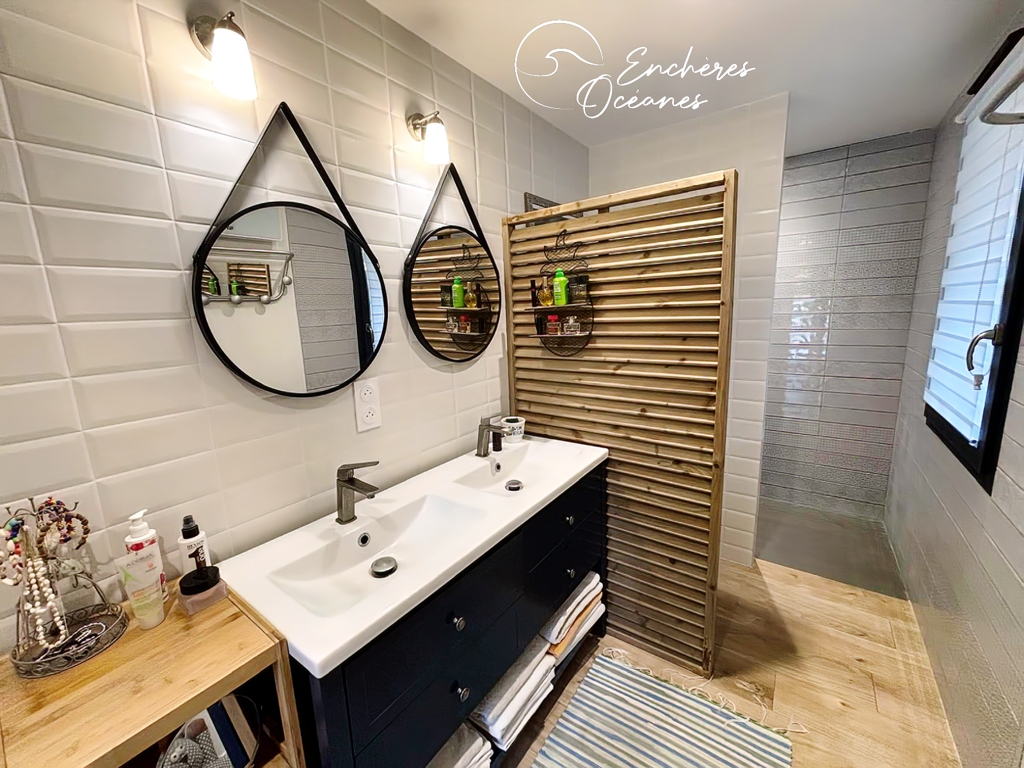 La pièce de vie lumineuse s’ouvre sur l’extérieur et communique avec une cuisine neuve et parfaitement équipée. Elle dispose de trois chambres, dont une suite parentale avec grand dressing, deux salles d’eau, deux WC et un cellier.